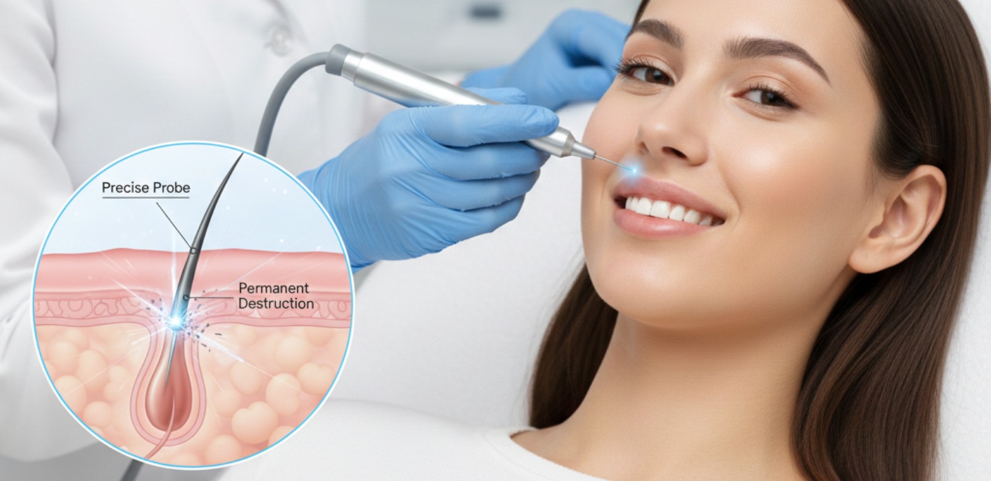 Electrolysis permanently destroys treated follicles. However, long-term success depends on biology, consistency, and professional skill.